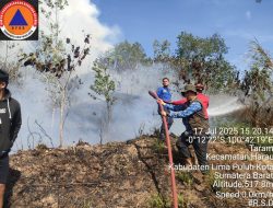 Kondisi tim gabungan saat memadamkan titik api pada karhutla yang terjadi di Kecamatan Harau, Kabupaten Lima Puluh Kota, Sumatera Barat, Kamis (17/7). Sumber foto: BPBD Kabupaten Lima Puluh Kota.