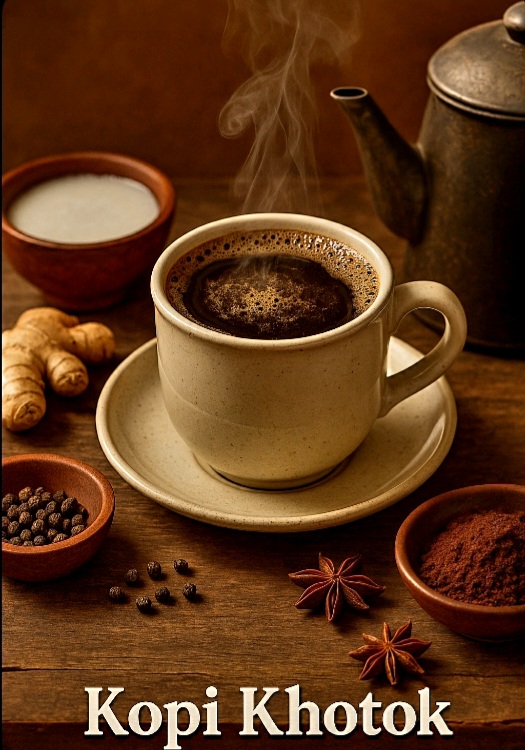 Kopi ini unik. Ia disajikan bukan hanya untuk mengusir kantuk, tapi juga untuk menghangatkan tubuh dan jiwa. Terbuat dari campuran kopi hitam murni, santan kental, dan berbagai rempah seperti jahe, merica, dan kadang cengkih atau kayu manis, kopi ini direbus bersama hingga mendidih, bukan diseduh biasa. Itulah asal nama “khotok”, yang berasal dari suara mendidih di dalam ceret saat proses perebusan.