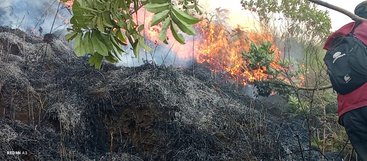 Kondisi kebakaran hutan dan lahan yang terjadi di Nagari Guguak Sarai, Kecamatan IX Koto Sungai Lasi, Kabupaten Solok, Provinsi Sumatera Barat, pada Sejak Jumat (11/7).