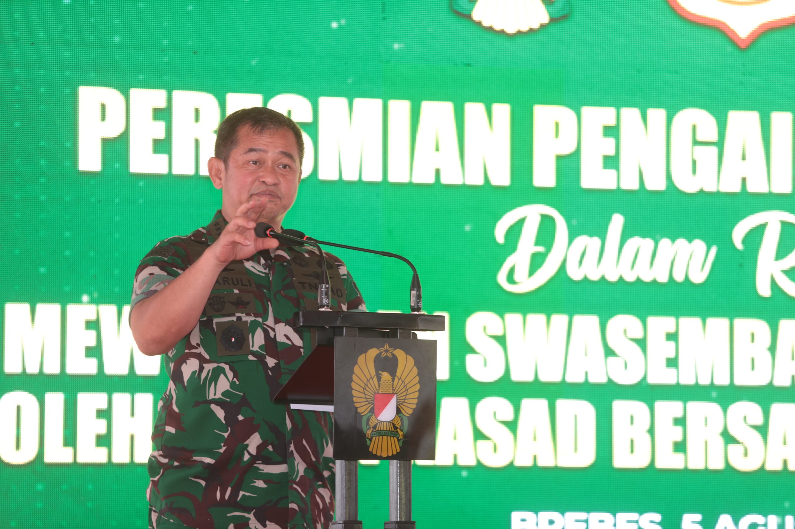 Kepala Staf Angkatan Darat (KSAD) Jenderal TNI Maruli Simanjuntak, M.Sc, ketika meresmikan fasilitas pengairan dan pipanisasi pertanian di Desa Legok, Kecamatan Bantarkawung, Kabupaten Brebes, Selasa (5/8/2025), mengatakan bahwa program ini menjadi wujud nyata komitmen TNI AD dalam mendukung ketahanan pangan nasional, sekaligus meningkatkan kesejahteraan masyarakat di daerah-daerah terpencil.