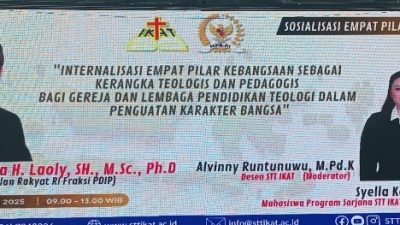 Sementara itu, Dr. Abdon A. Amtiran, M.Th., Direktur Pascasarjana STT IKAT, menegaskan bahwa pendidikan teologi tidak hanya membentuk kecerdasan spiritual, tetapi juga menjadi wadah untuk mengembangkan kesadaran kebangsaan yang berakar pada nilai-nilai luhur. “Empat pilar kebangsaan dapat dipahami bukan hanya sebagai konsensus politik, melainkan kerangka teologis dan pedagogis yang membentuk karakter dan etos hidup bersama,” ujarnya.