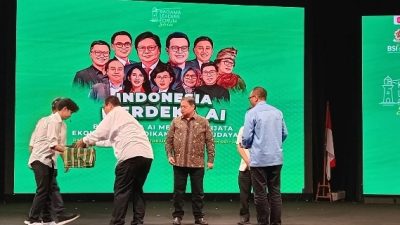 Sebagai penutup, Airlangga membacakan pantun yang mengundang senyum hadirin. Momen ringan itu seakan menegaskan bahwa optimisme menuju Indonesia Emas 2045 tidak hanya dibangun dengan strategi besar, tetapi juga dengan semangat kebersamaan.