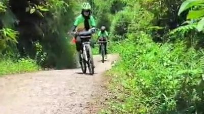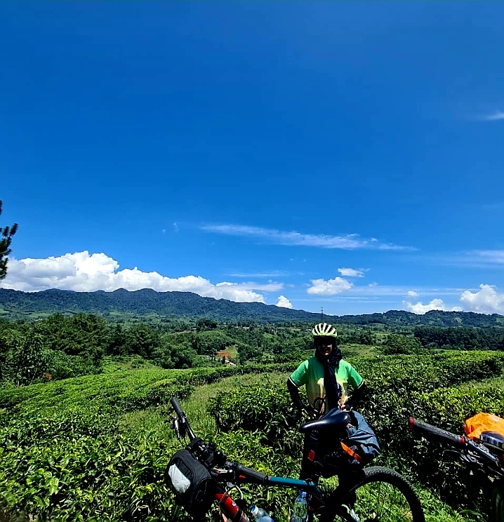 Didampingi beberapa rekan, Uchie memulai rute gowes dari area utama perkebunan dengan suasana pagi yang sejuk dan udara segar khas perdesaan Bogor. Jalur yang dilalui melintasi deretan pohon teh dan hamparan hijau kebun yang masih terawat rapi, menghadirkan pengalaman bersepeda yang menyehatkan sekaligus menenangkan.