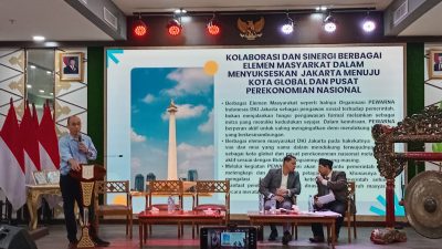 JAKARTA, Indonesiasatu928.com— Pemerintah Provinsi DKI Jakarta menegaskan pentingnya peran jurnalis dalam menjaga stabilitas sosial serta mendukung terwujudnya kota yang bersih, nyaman, indah, dan sejahtera. Penegasan itu disampaikan oleh Aliazer Hutapea, SE., M.M., Pelaksana tugas Kepala Bidang Politik dan Demokrasi Badan Kesatuan Bangsa dan Politik (Bakesbangpol) Provinsi DKI Jakarta, dalam acara pelantikan dan seminar PEWARNA Indonesia DKI Jakarta di Ruang MH Thamrin, Balai Kota DKI Jakarta, Sabtu (1/11/2025).
