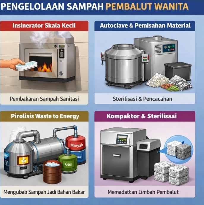 Sementara itu pemerintah perlu mendorong inovasi teknologi pengelolaan limbah sanitasi, seperti insinerator skala kecil atau sistem sterilisasi limbah, agar sampah sanitasi dapat ditangani secara aman dan higienis.