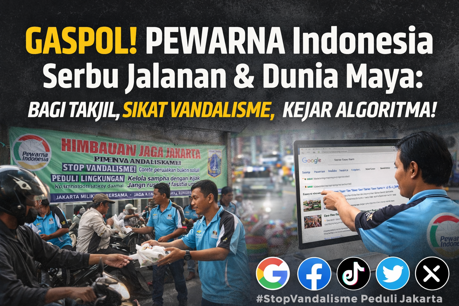 Pewarna Indonesia tak main-main. Dari jalanan hingga dunia maya, semua digarap. Bagi takjil jalan terus, tapi pesan keras juga dilontarkan: stop vandalisme, jangan rusak fasilitas umum, dan lawan aksi anarkis!