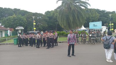 Aparat gabungan dari Polri, TNI, dan Satpol PP ditempatkan di sejumlah titik strategis untuk memastikan kegiatan berjalan aman, tertib, dan masyarakat dapat mengikuti acara dengan nyaman.