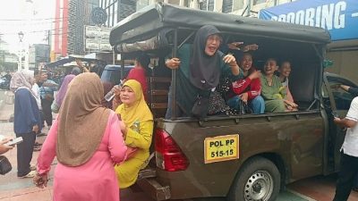 Yang menarik, kendaraan Satpol PP dari berbagai kelurahan terlihat turut mengangkut warga menuju lokasi acara. Pemandangan rombongan warga yang datang bersama-sama menciptakan suasana seperti pesta rakyat besar di tengah kota.