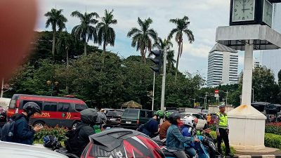 Kepolisian juga terus melakukan pengaturan lalu lintas serta pengawasan di area sekitar Monas guna mengantisipasi lonjakan massa yang datang dari berbagai wilayah Jakarta.
