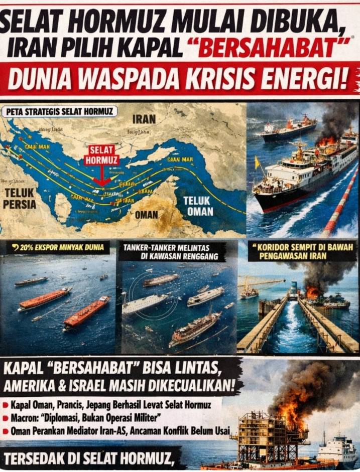 Selat Hormuz boleh saja mulai dilintasi kembali, tetapi dunia belum bisa bernapas lega. Selama konflik belum mereda, keran energi global tetap berada di ujung jari geopolitik—dan satu percikan konflik saja bisa membuat harga minyak dunia kembali meledak.