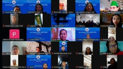 Perkuliahan online streaming Mahasiswa S1 dan S2 STT Injili Philadelphia mengikuti kuliah umum bertema Fondasi Teologis dan Etika Kristiani yang menghadirkan Dr. Denny Zakhirsyah, M.Pd., di kampus STT IP, Tangerang, Banten, Sabtu (11/4/2026).