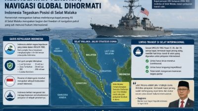 JAKARTA, — Pemerintah Indonesia menegaskan komitmennya menjaga kedaulatan wilayah sekaligus menghormati hukum internasional menyusul melintasnya kapal perang Amerika Serikat di Selat Malaka, (22/4/2026).