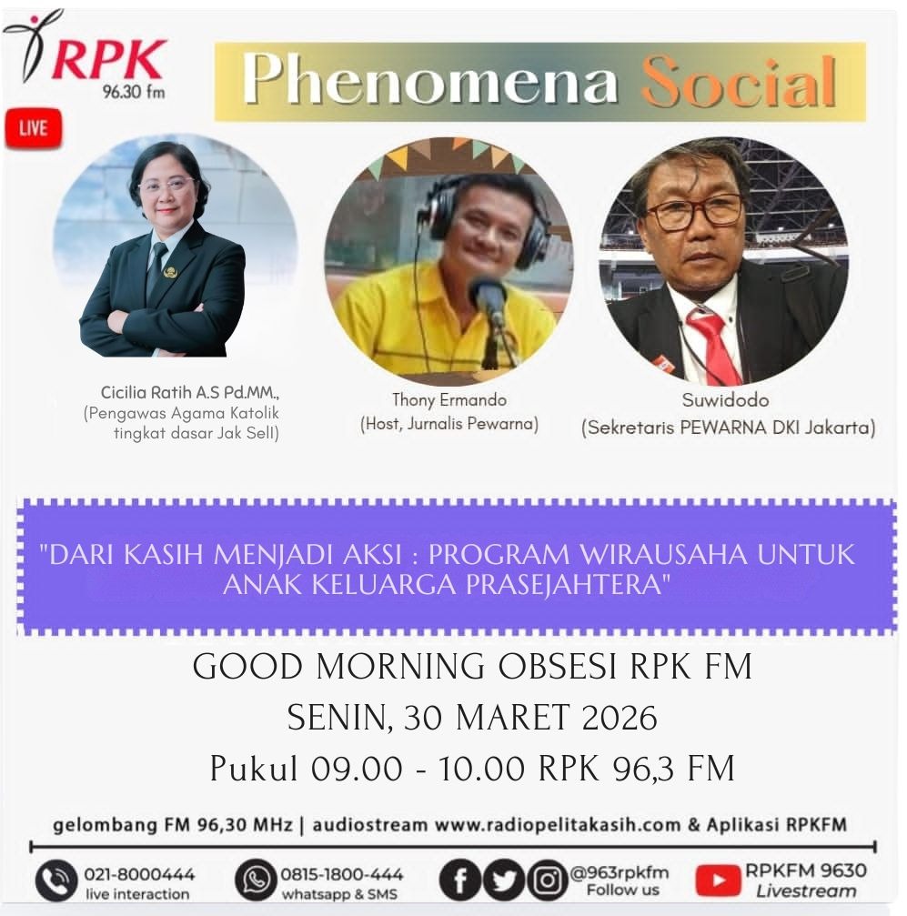 JAKARTA – Program dialog “Phenomena Social – Obsesi” di RPK 96.3 FM pada Senin (30/3/2026)… Read More